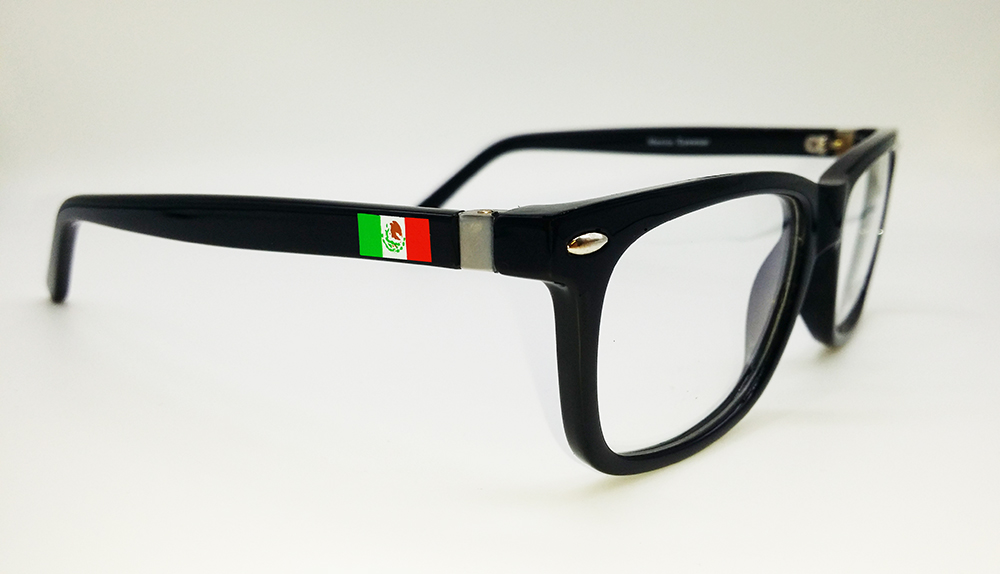 The Mexico P9017-1 is a frame that comes in gloss black and red / black. It can be worn with no prescription or in all prescriptions. They are perfect pair of eyeglasses showing the world how much you love Mexico!